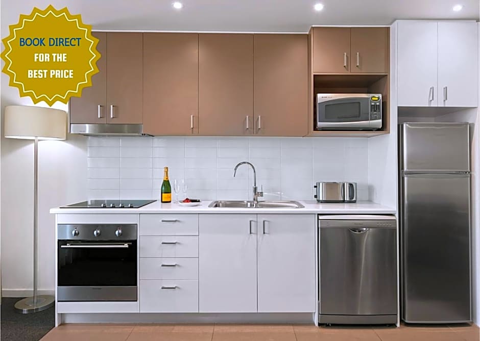 This apartment features a balcony, separate lounge area, fully equipped kitchen and laundry facilities.